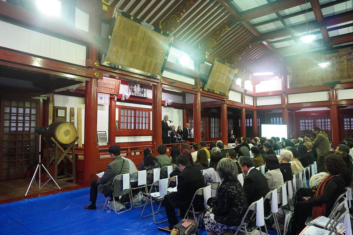 令和7年10月25日(土)に本展開会式が行われ、77名(台湾美術家11名含む)の出展者と同行者、ご来賓や本展関係者がおよそ150名以上に及ぶ出席者で、会場となった武徳殿は超満員となり、盛大な幕開けの始まりを遂げ、式典が進行されました。