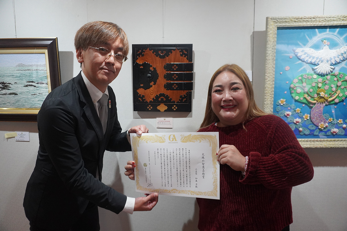藝文協会がこれまで芸術文化の振興と国際交流で果たされた貴重な貢献に心より敬意を表します。第二回藝文協会展のご成功を祈念しております。ありがとうございました。
