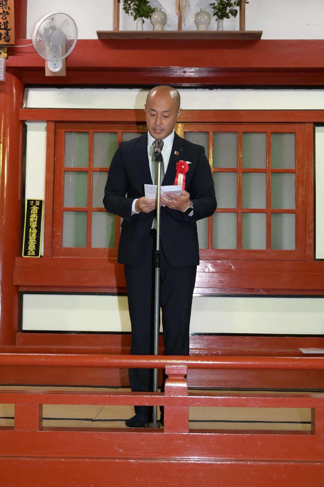 本来は稲葉宮司より皆様に直接ご挨拶するべきところ、本日当宮の責務により出席が叶わず、代理として私から祝辞を述べさせていただきます。