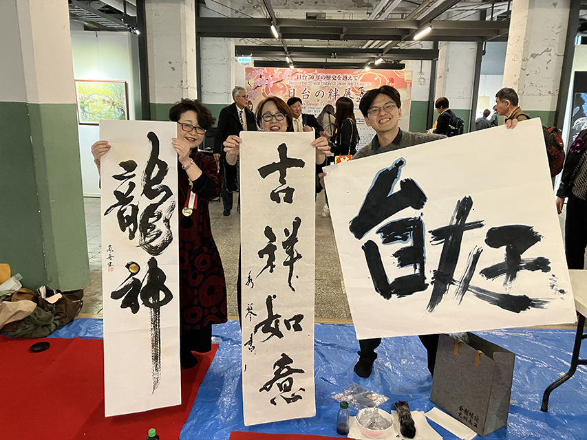 式典終了後には、日本と台湾の美術家による席上揮毫会が営まれ、それぞれの国の文化的な精神の交換が成され、これぞ古来続く芸術による心の会話として多くの鑑賞者を魅了したことは間違いありません。