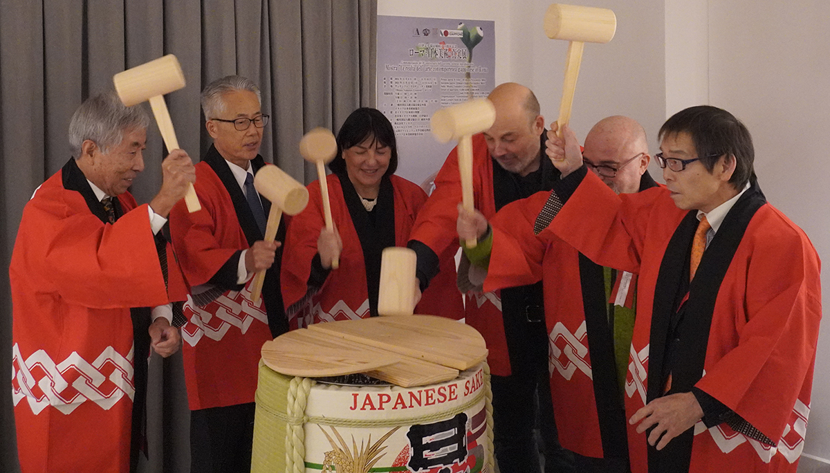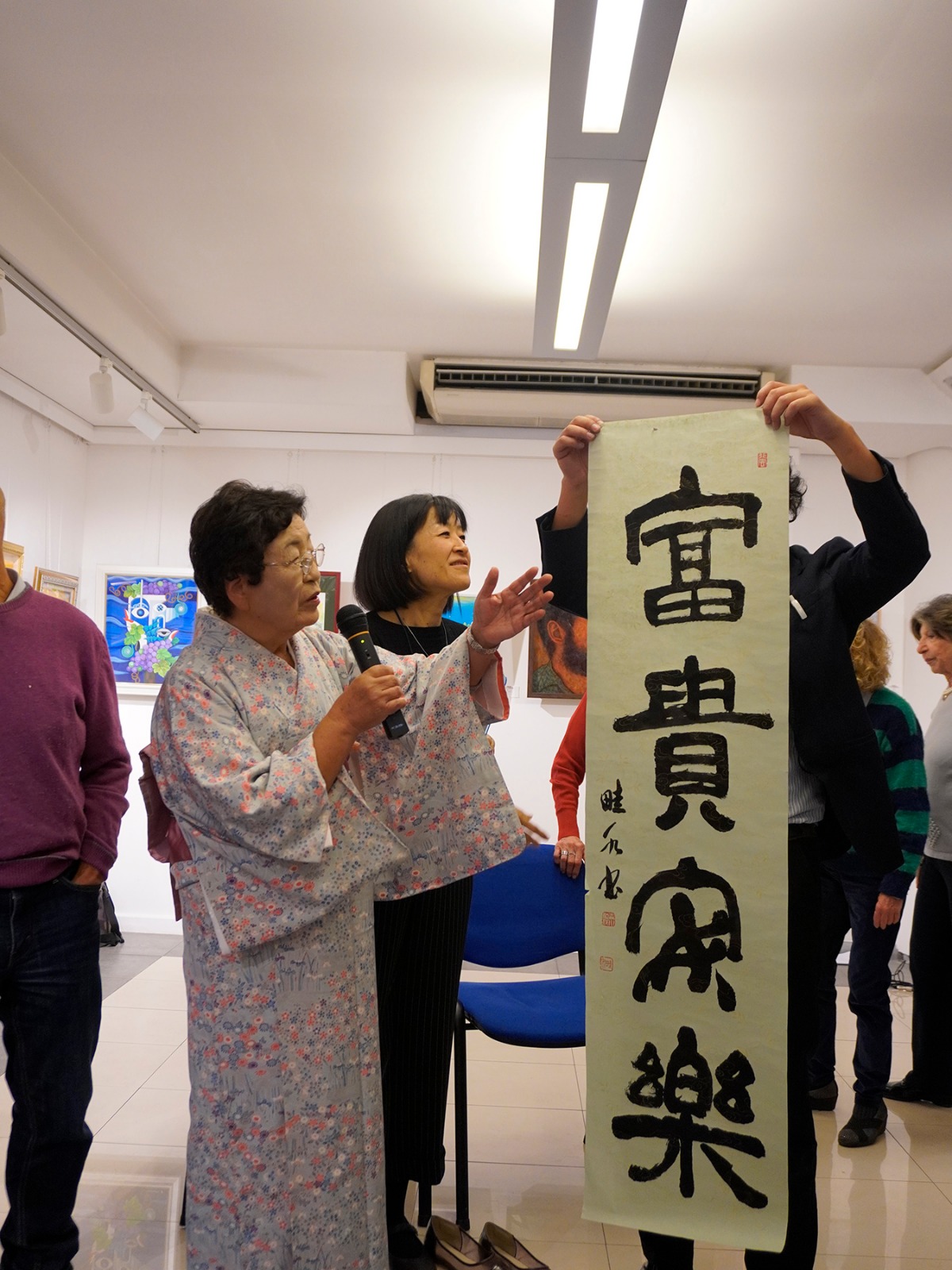 ご来賓からのご祝辞や主催側スピーチを賜った後に、日本らしく鏡割りで乾杯を発声してご歓談、その途中に日本作家三名によるデモンストレーションが披露されました。およそ2時間に及ぶ開会セレモニーは終始、笑顔・歓談で幕を閉じました。