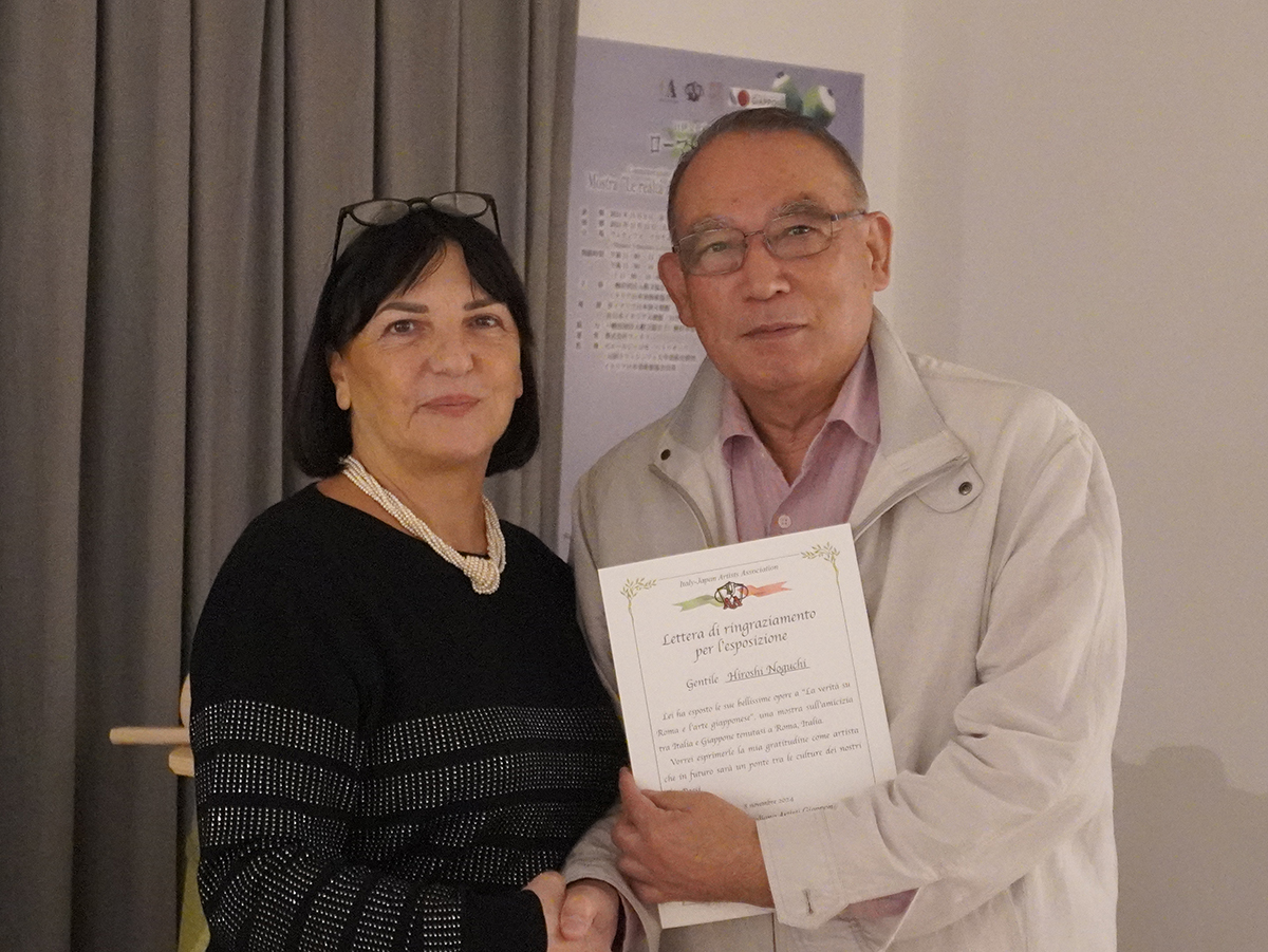 本年3月に日伊文化交流を目的としたイタリア日本美術家協会の発足式が東京で開催され、発足から初めての美術展がイタリアの首都ローマで開催されることを大変嬉しく思います。