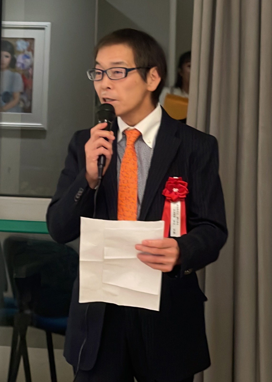 まず、この度は在イタリア日本国大使館特命全権大使の鈴木哲大使にご来臨のお礼を申し上げます。ありがとうございました。